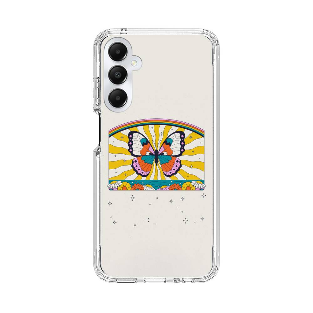 Schmetterling auf dem Regenbogen-Hintergrund Samsung Galaxy A05s Silikon Hülle● Sehr robust & langlebig