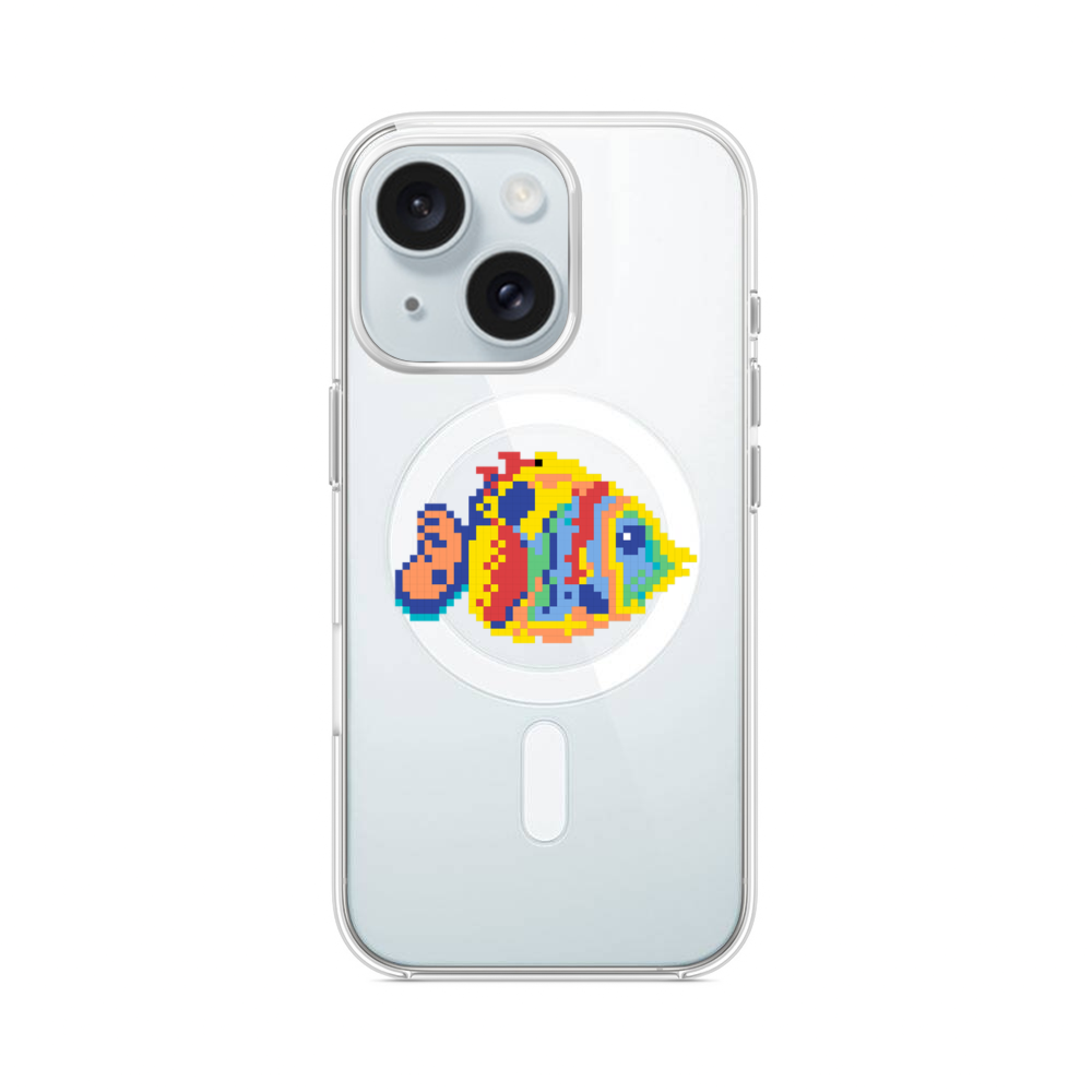 Bunte Fische iPhone 15 MagSafe‑kompatible Silikonhülle mit Kamera‑Kickstand● Sehr robust & langlebig