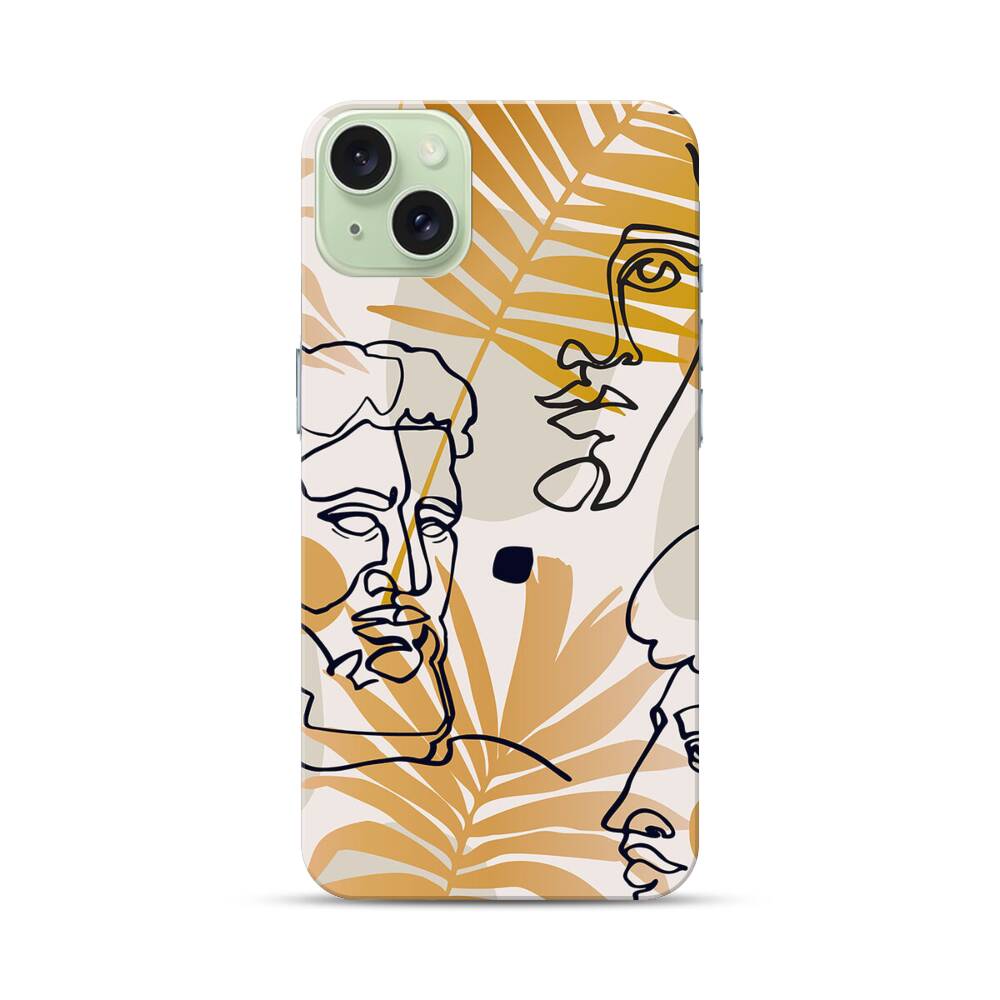 Linie Gesichter Mit Palme Apple iPhone 15 Plus Hülle● Rundum bedruckbar