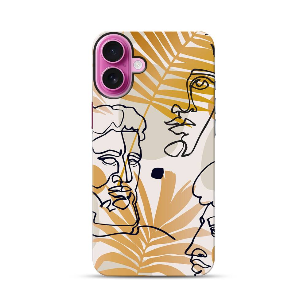 Linie Gesichter Mit Palme Apple iPhone 16 Plus Hybrid Case● Rundum bedruckbar