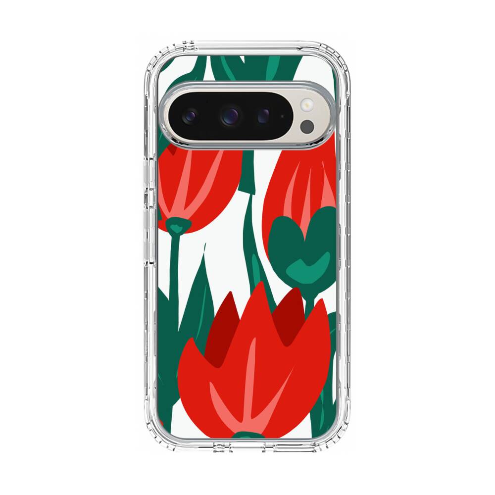 Karmesinrote Tulpen Google Pixel 10 Pro Silikon Hülle● Sehr robust & langlebig
