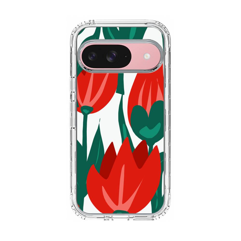 Karmesinrote Tulpen Google Pixel 9 Silikon Hülle● Sehr robust & langlebig