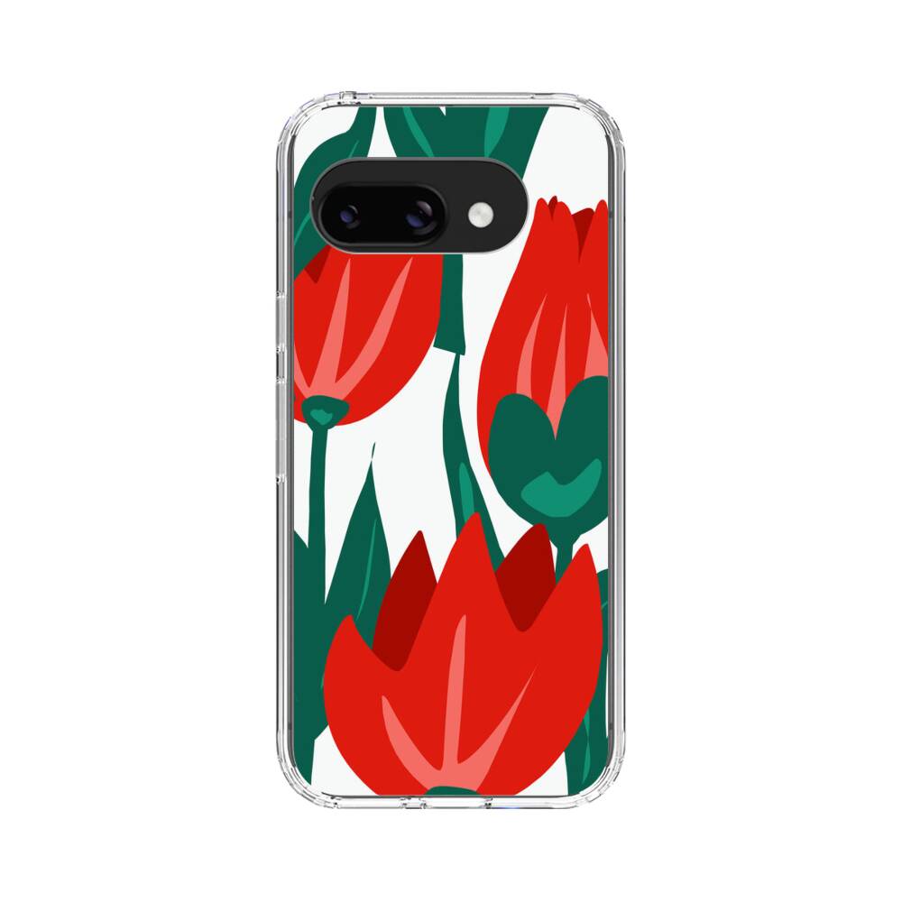 Karmesinrote Tulpen Google Pixel 9a Silikon Hülle● Sehr robust & langlebig