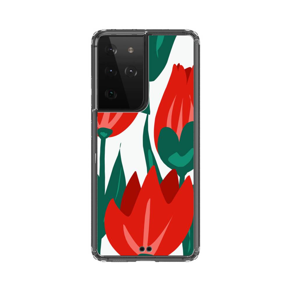 Karmesinrote Tulpen Samsung Galaxy S21 Ultra Silikon Hülle● Sehr robust & langlebig