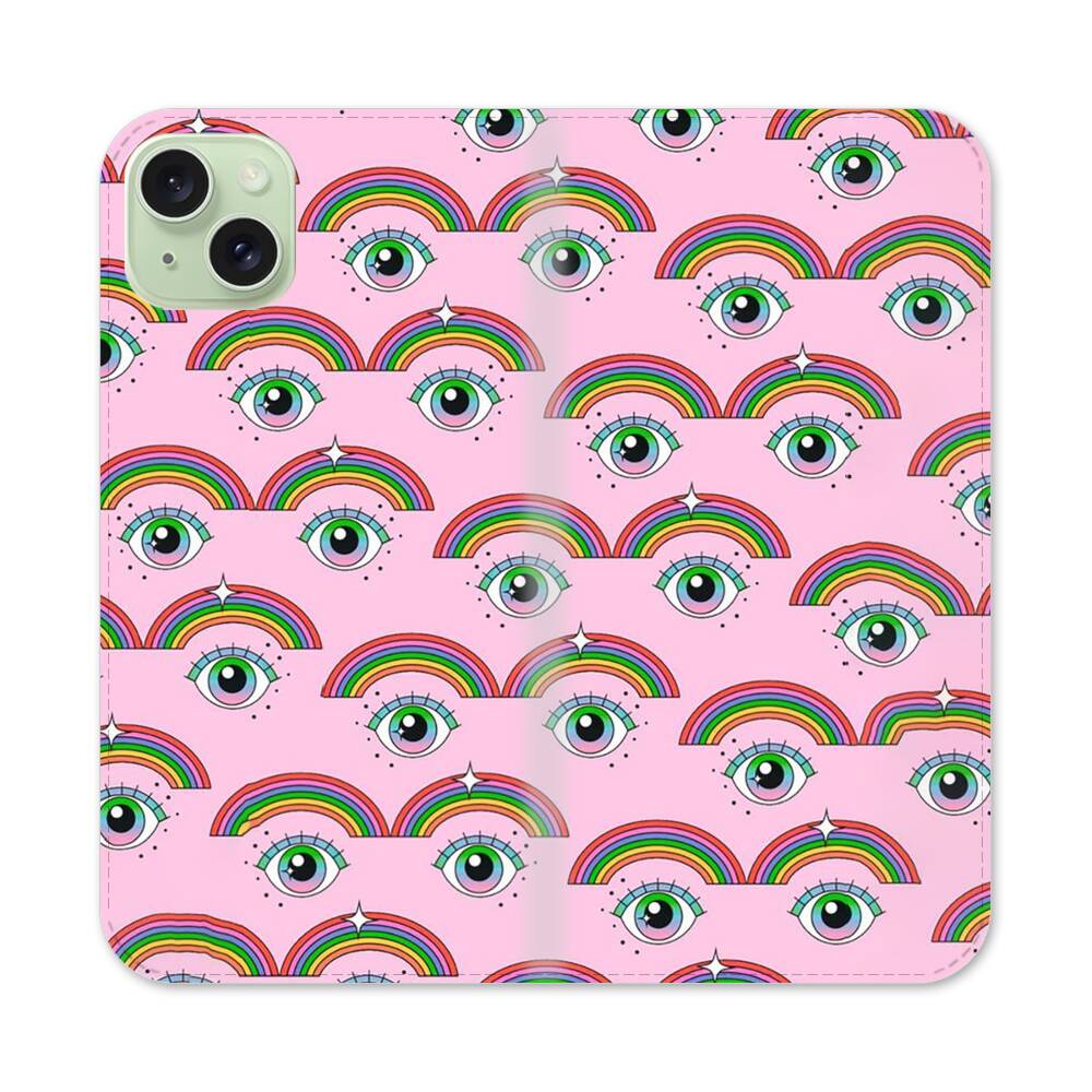 Cartoon Augen Muster Apple iPhone 15 Plus Flip Case● Seitlich klappbar