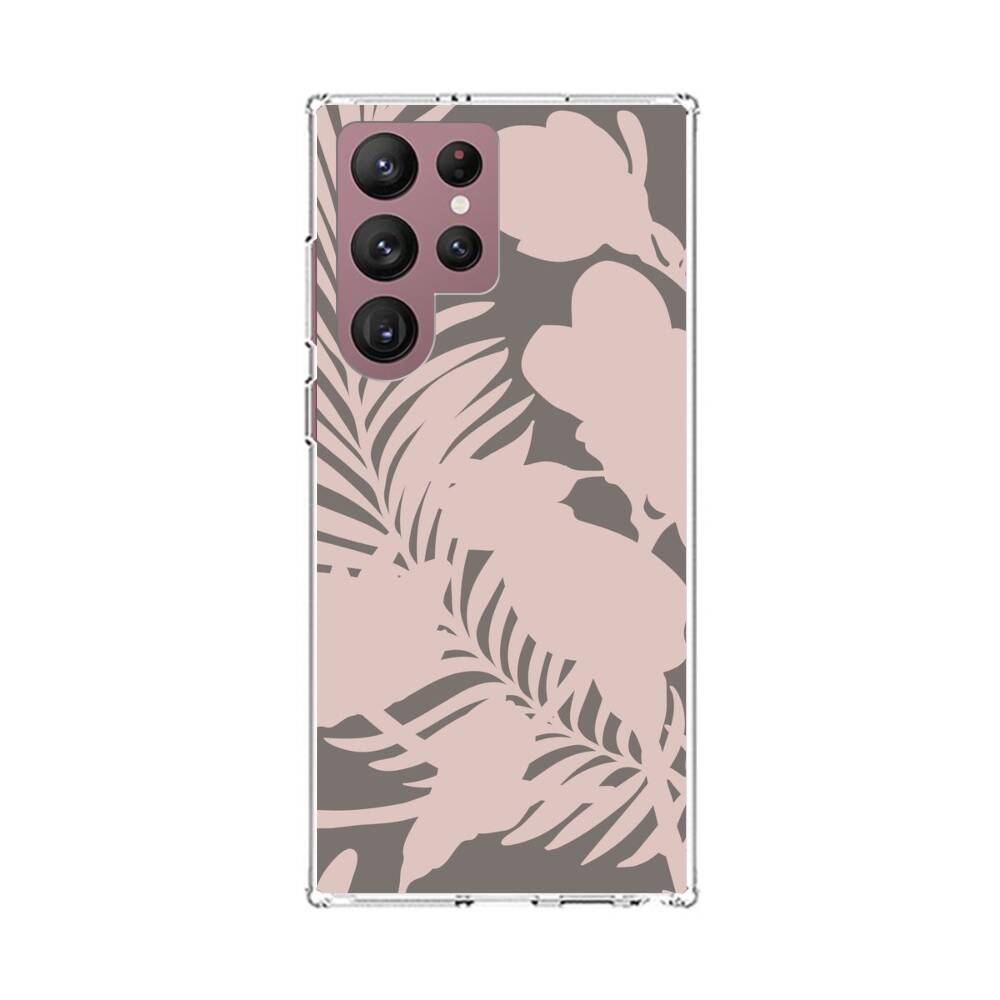 Rosa Tropische Blätter Samsung Galaxy S22 Ultra Silikon Hülle● Sehr robust & langlebig
