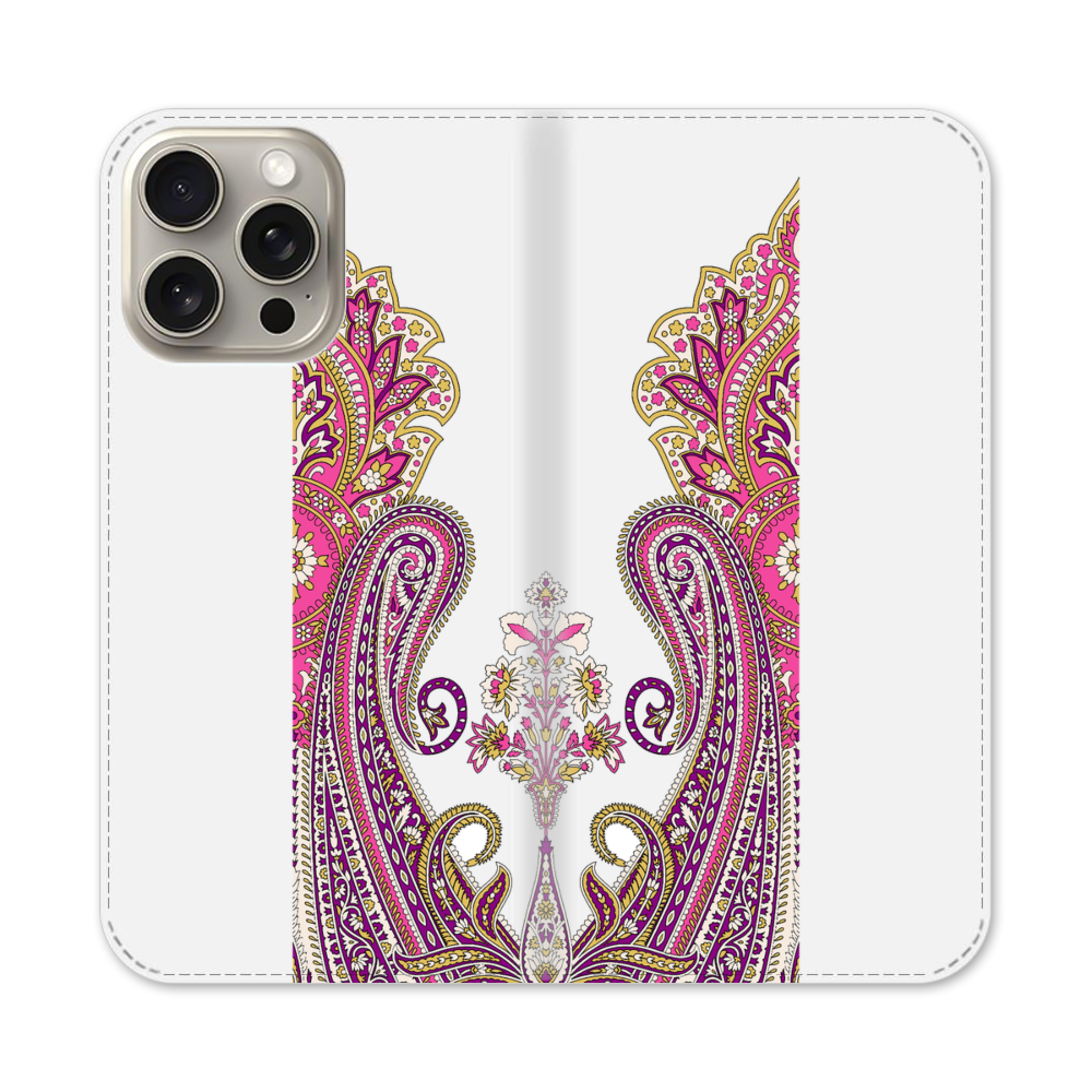 Pinke Barockstille Apple iPhone 15 Pro Max Flip Case● Seitlich klappbar