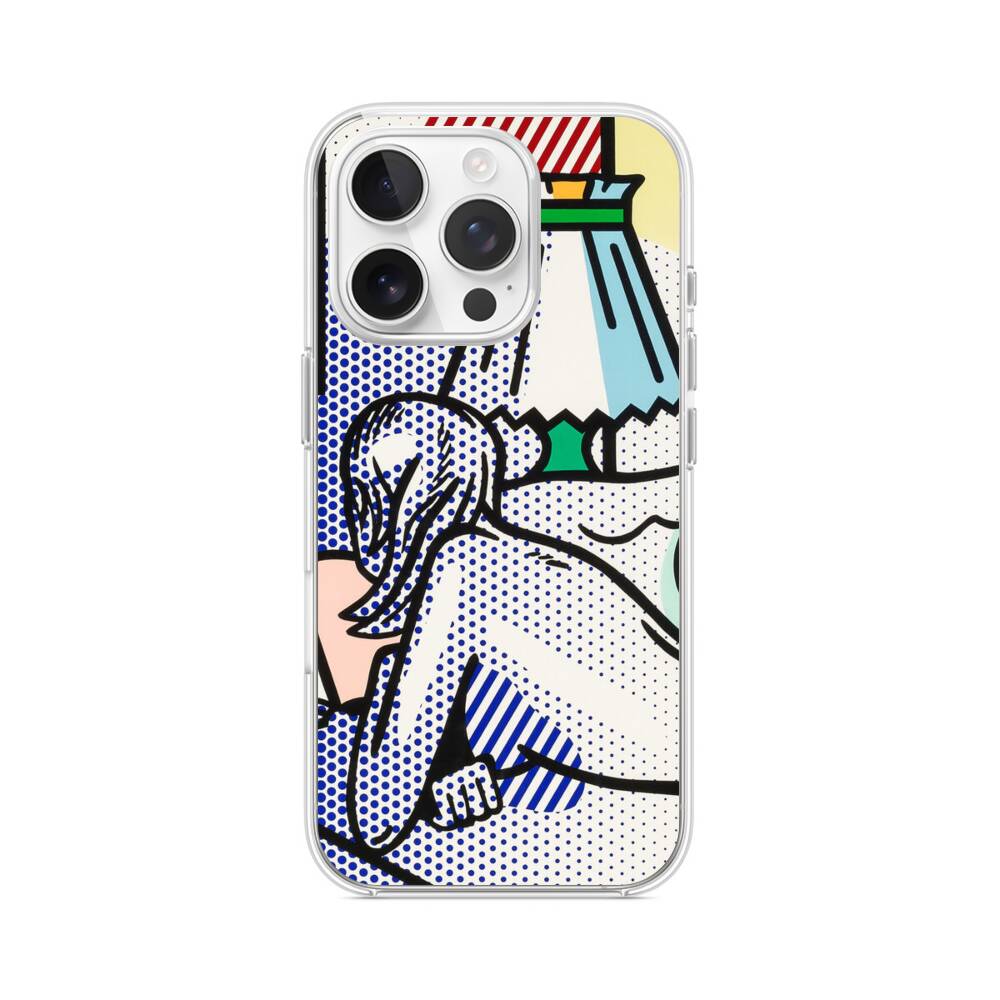 Lesende Frau iPhone 15 Pro MagSafe‑kompatible Silikonhülle mit Kamera‑Kickstand● Sehr robust & langlebig