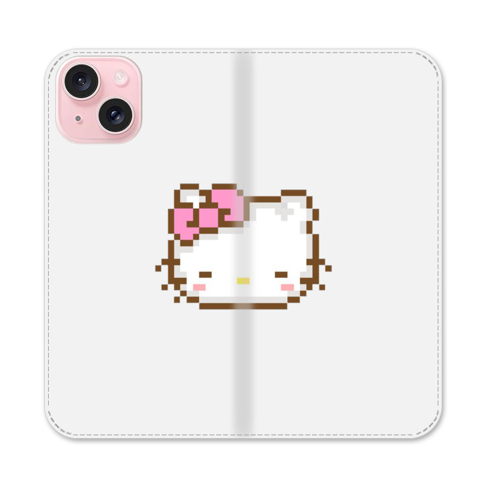 Comic Verpixelte Hello Kitty Apple iPhone 15 Flip Case● Seitlich klappbar
