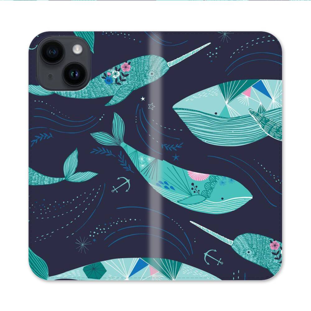 Grüne Wale Apple iPhone 14 Flip Case● Seitlich klappbar