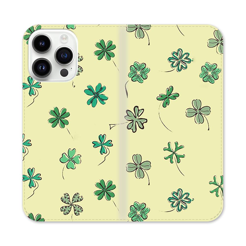 Grün Kleeblatt Muster Apple iPhone 14 Pro Max Flip Case● Seitlich klappbar