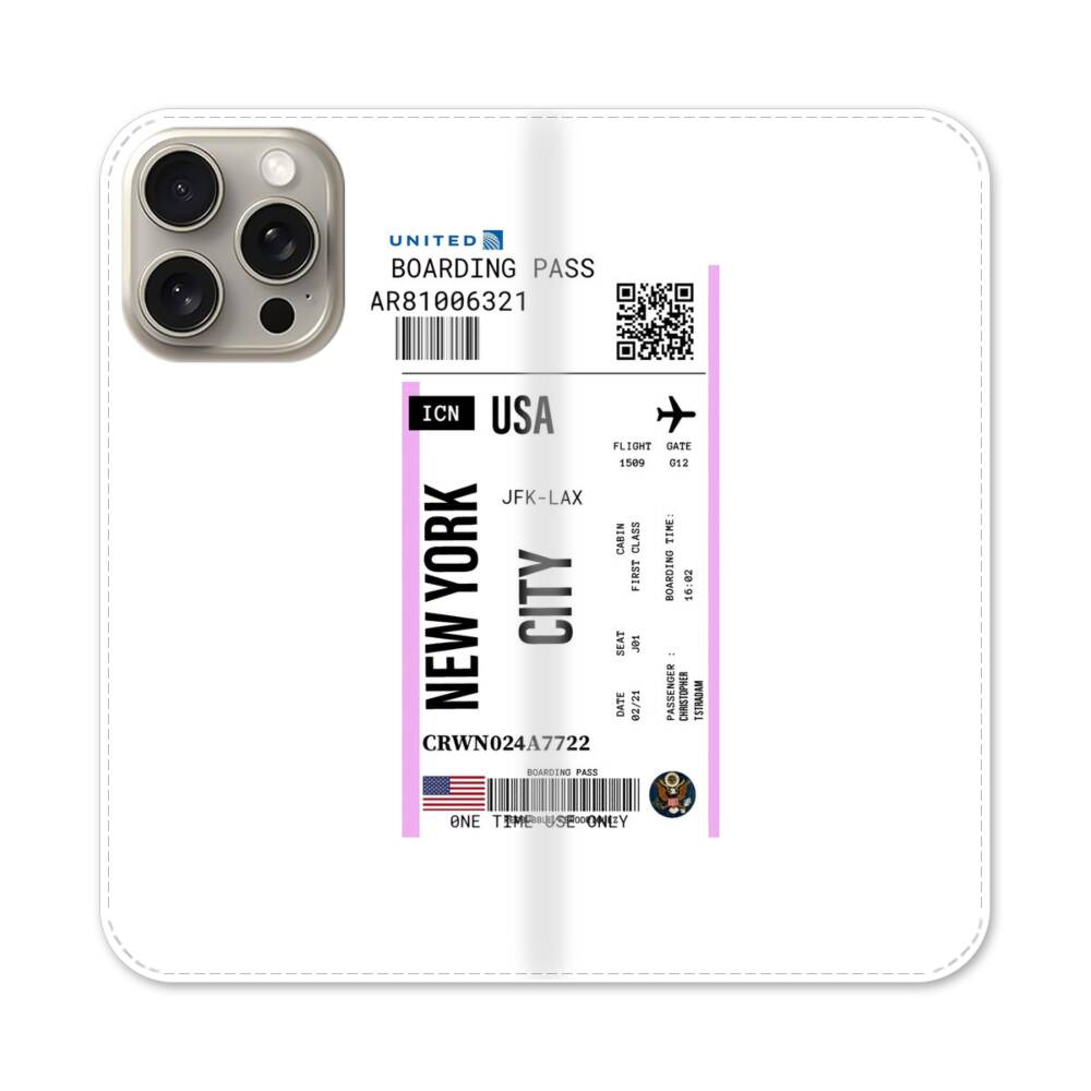 Flugticket nach der USA Apple iPhone 15 Pro Max Flip Case● Seitlich klappbar