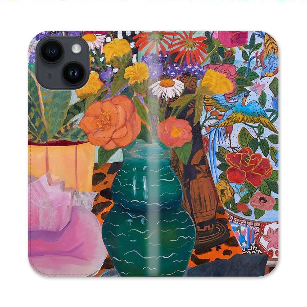 Smaragdfarben Vase Apple iPhone 14 Flip Case● Seitlich klappbar