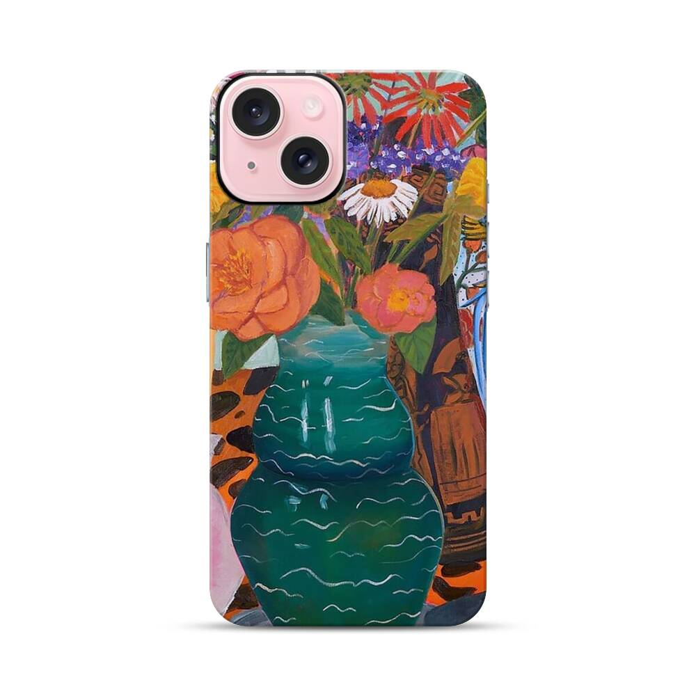 Smaragdfarben Vase Apple iPhone 15 Hybrid Case● Rundum bedruckbar