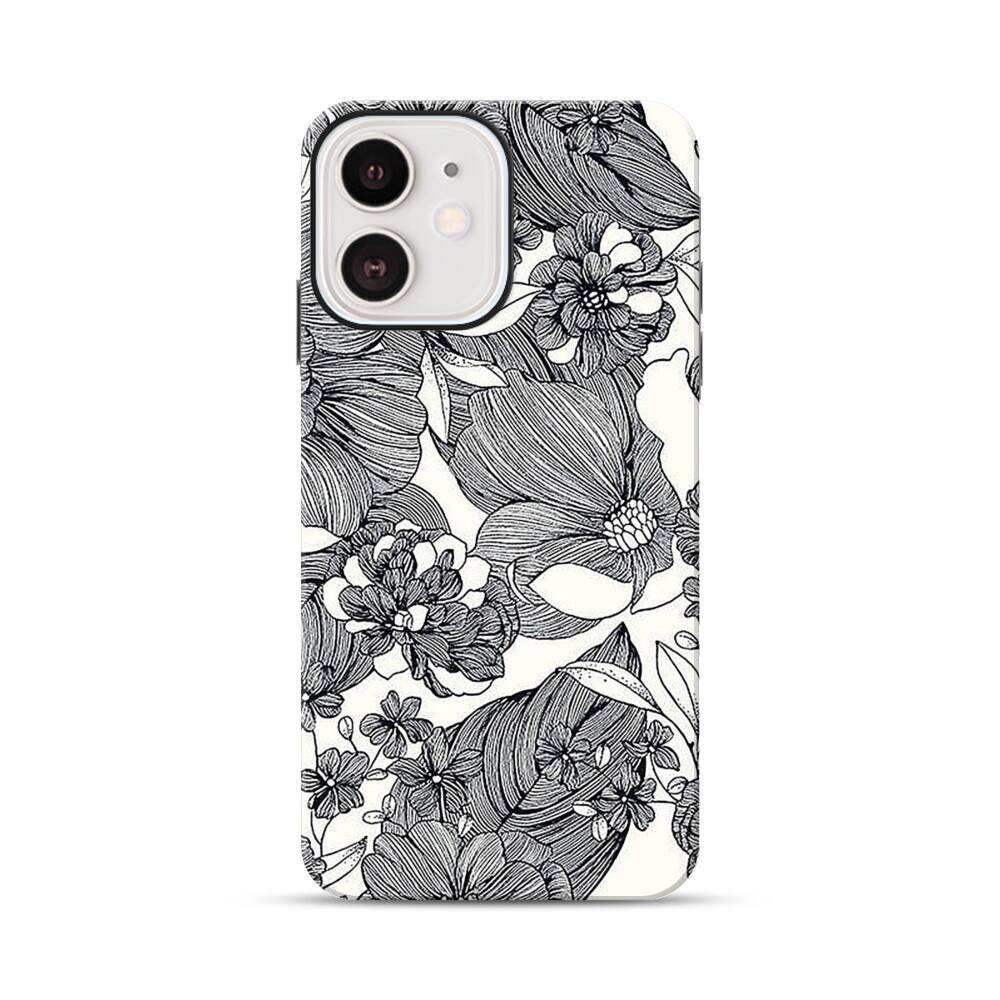 Blumen Skizzieren Apple iPhone 12 Mini Hybrid Case● Rundum bedruckbar