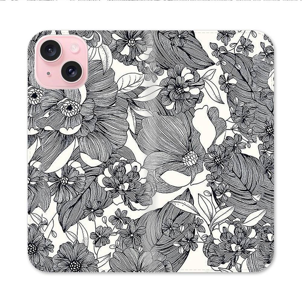 Blumen Skizzieren Apple iPhone 15 Flip Case● Seitlich klappbar