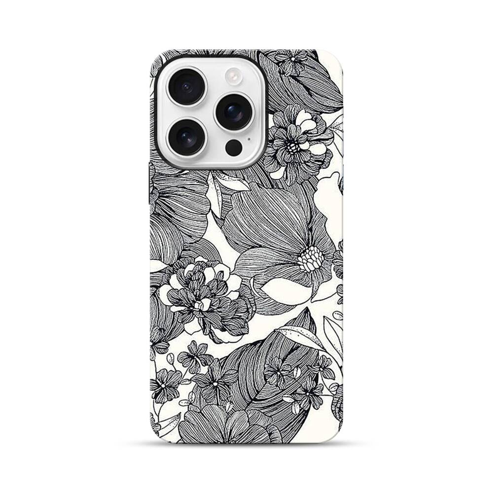 Blumen Skizzieren Apple iPhone 16 Pro Hybrid Case● Rundum bedruckbar