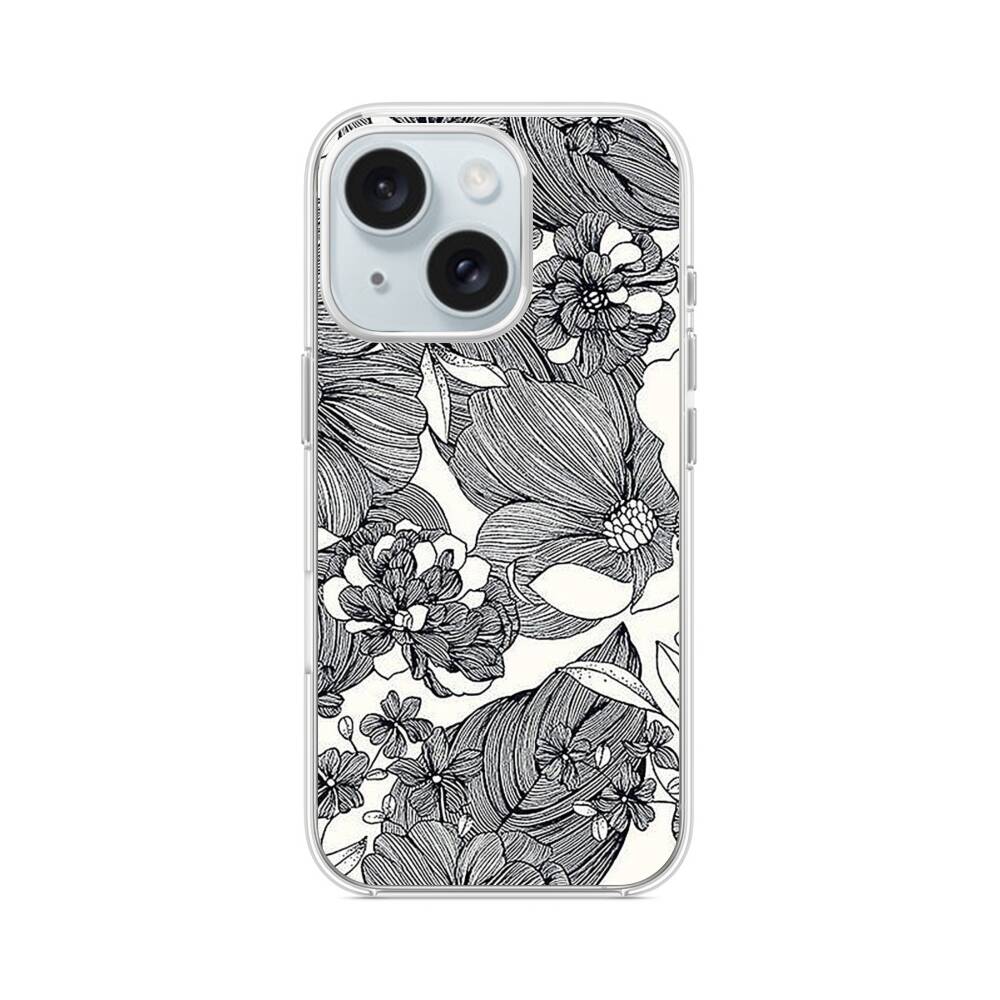 Blumen Skizzieren iPhone 15 MagSafe‑kompatible Silikonhülle mit Kamera‑Kickstand● Sehr robust & langlebig