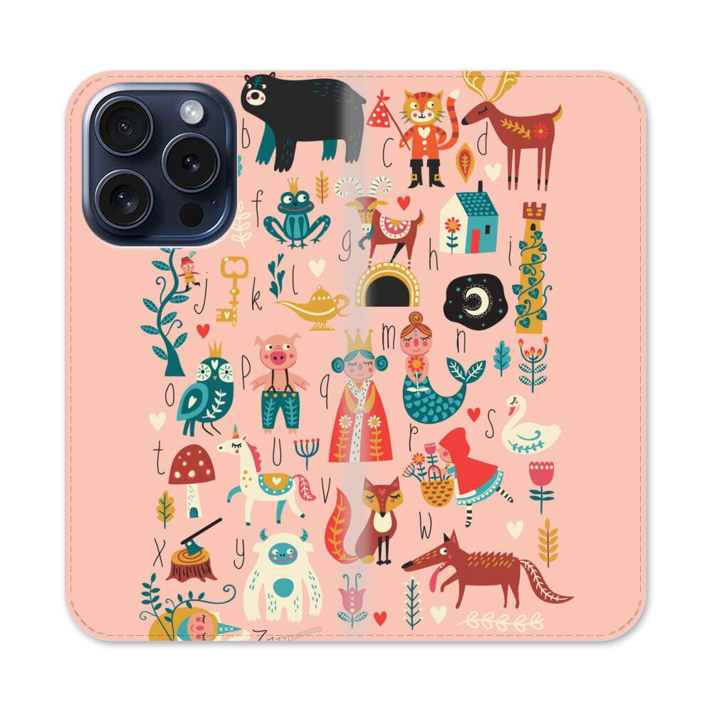 Märchenfiguren Clipart Muster Apple iPhone 15 Pro Flip Case● Seitlich klappbar