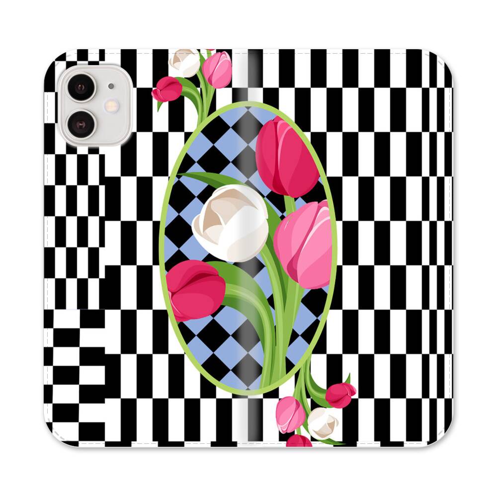 Karo Mit Tulpen Apple iPhone 12 Mini Flip Case● Seitlich klappbar