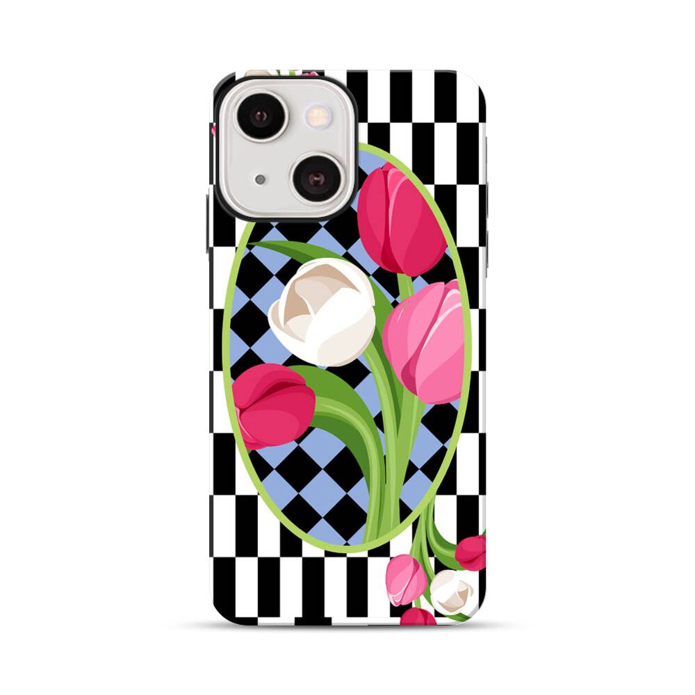 Karo Mit Tulpen Apple iPhone 13 Hybrid Case● Rundum bedruckbar