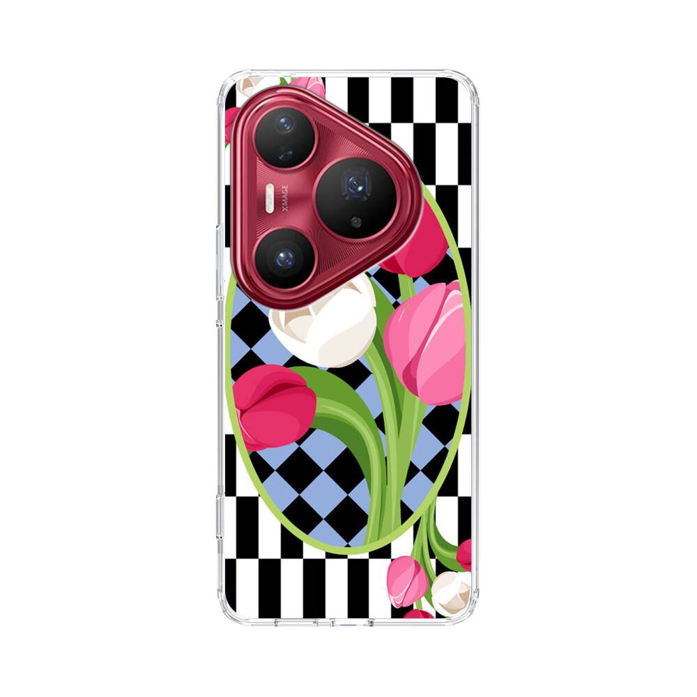 Karo Mit Tulpen Huawei Pura 80 Pro Plus Silikon Hülle● Sehr robust & langlebig