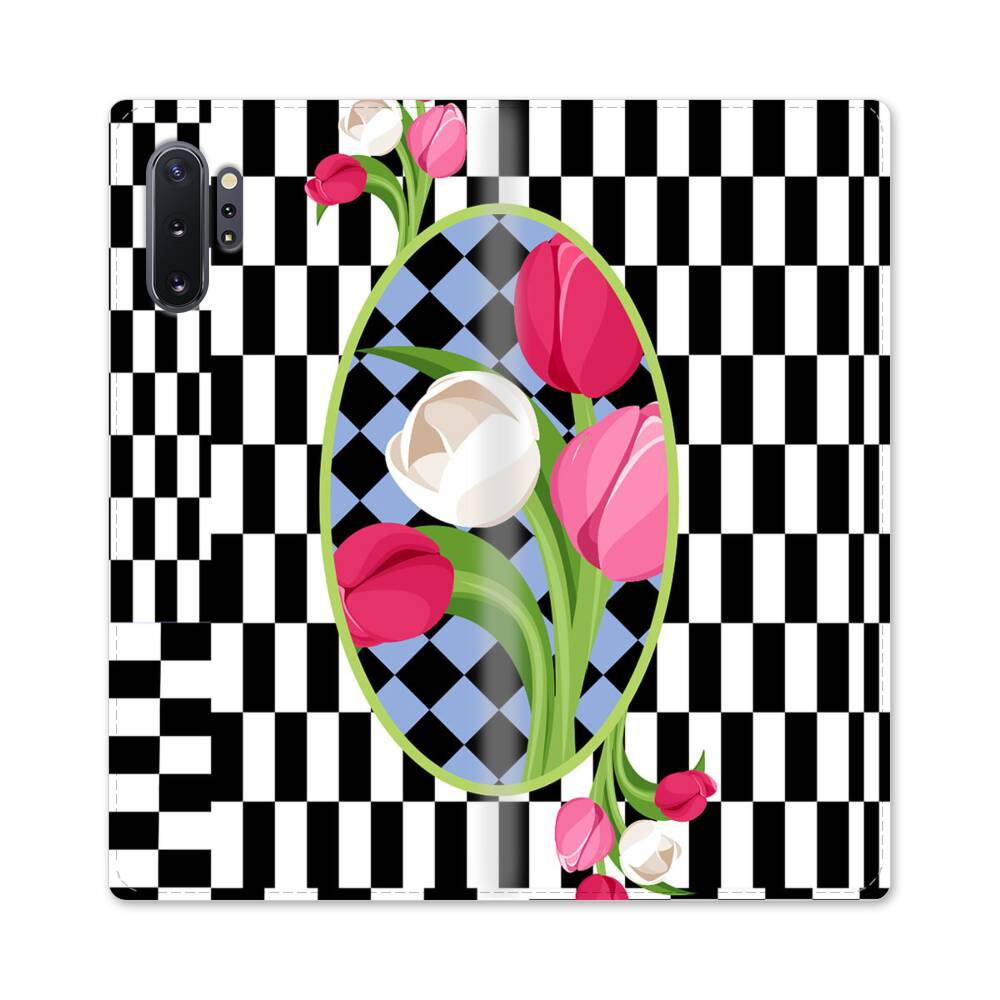 Karo Mit Tulpen Samsung Galaxy Note 10 Plus Flip Case● Seitlich klappbar