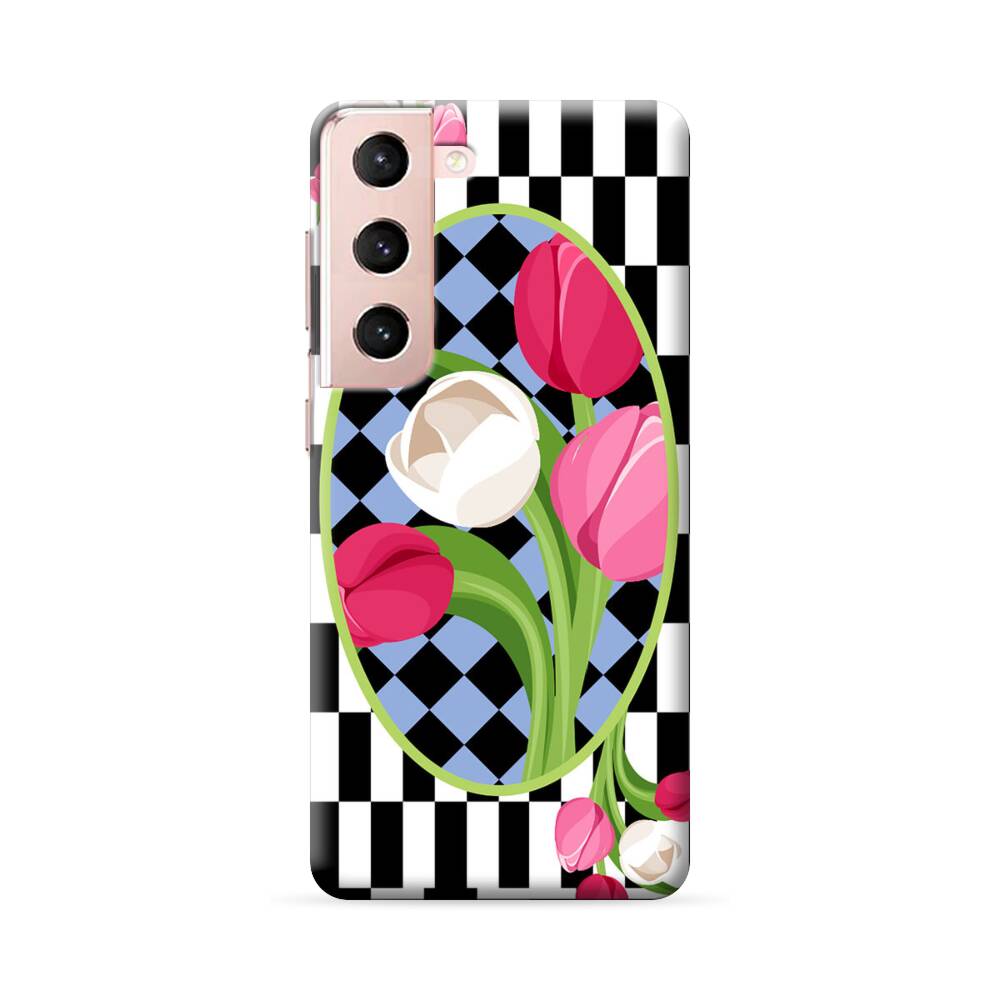 Karo Mit Tulpen Samsung Galaxy S22 Plus Hülle● Rundum bedruckbar
