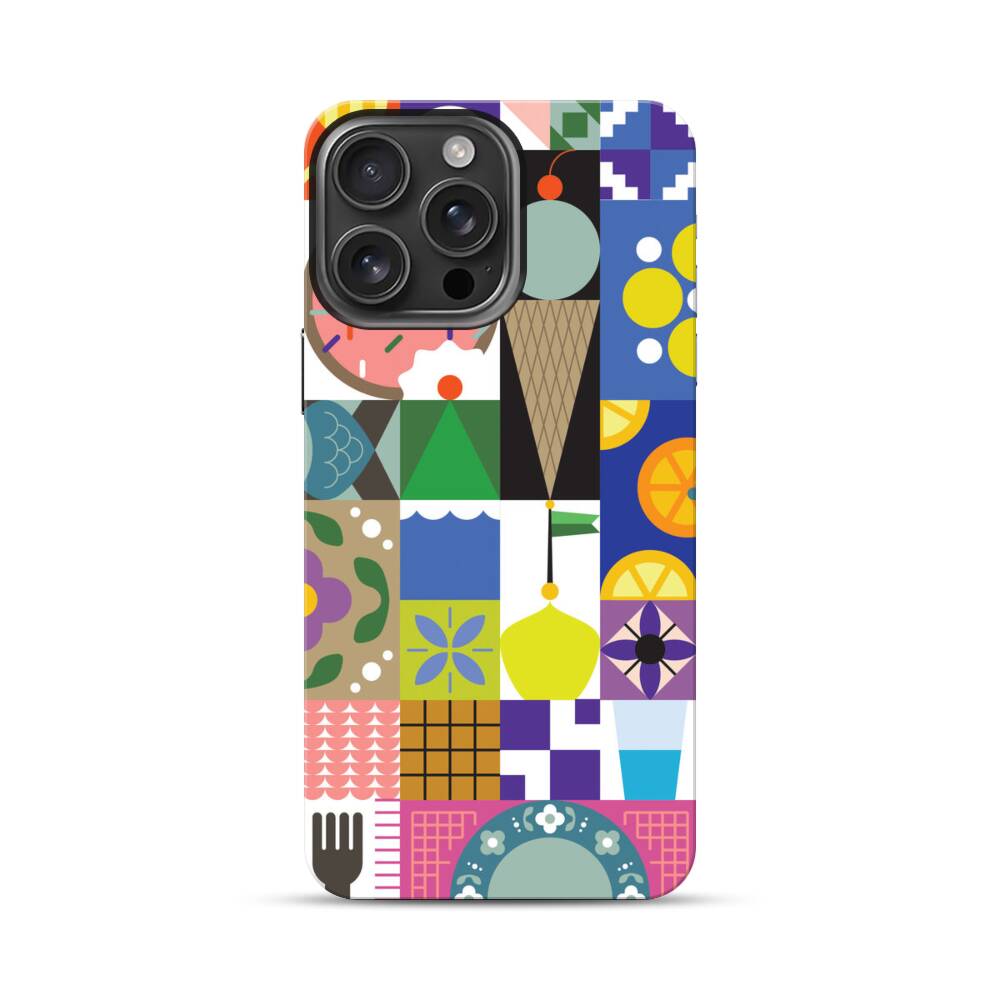 Bunte Geometrie Desserts Apple iPhone 16 Pro Max Hybrid Case● Rundum bedruckbar