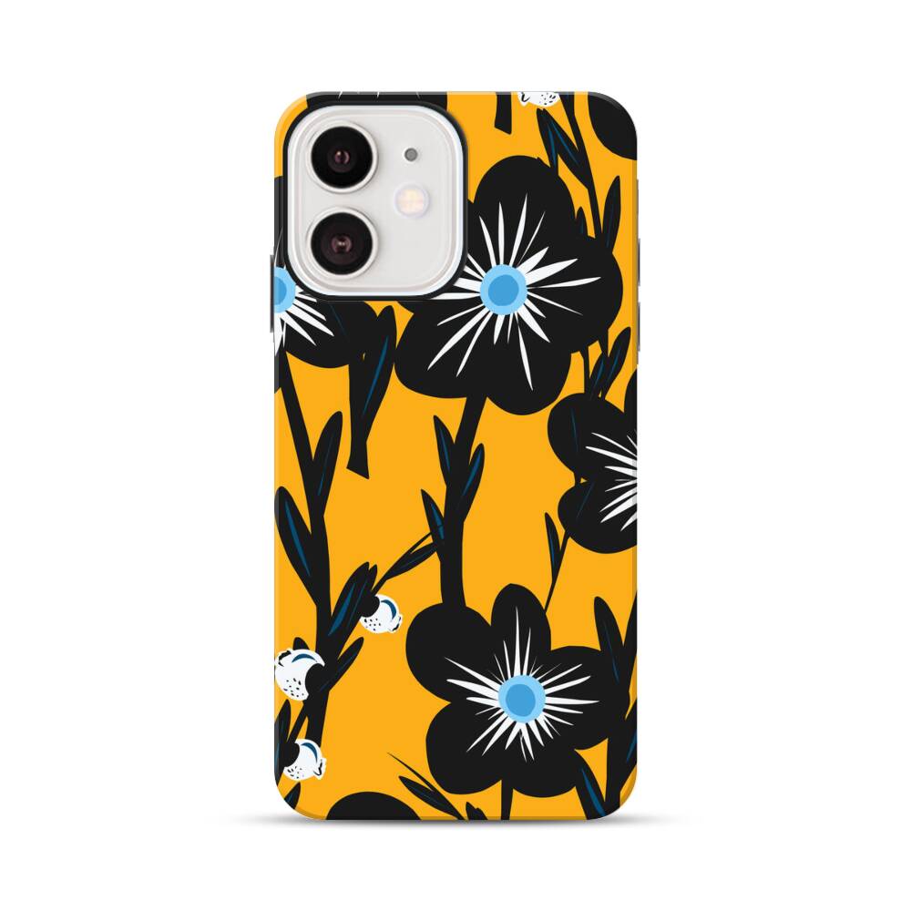 Schwarze Pflaumeblumen Apple iPhone 12 Mini Hybrid Case● Rundum bedruckbar