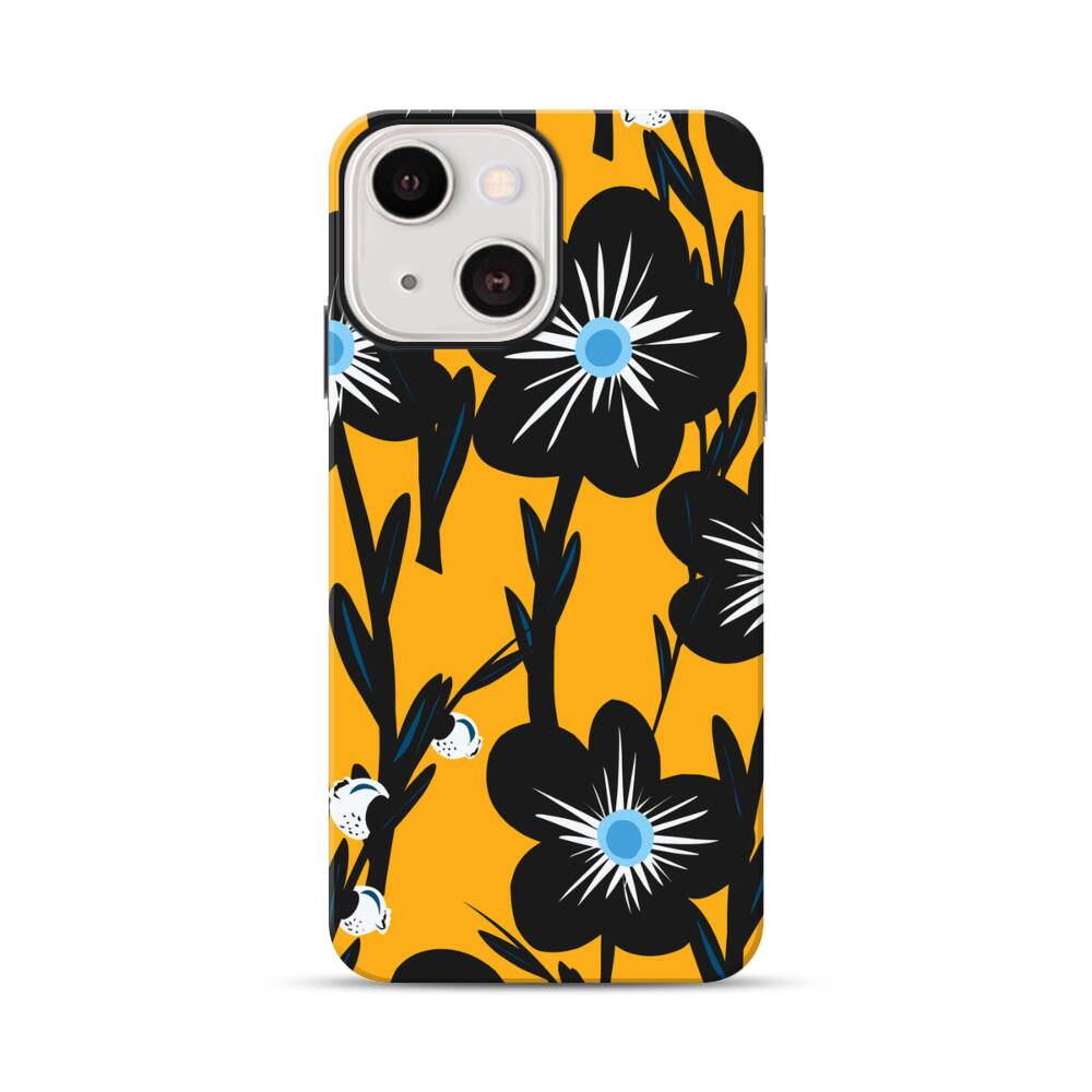 Schwarze Pflaumeblumen Apple iPhone 13 Hybrid Case● Rundum bedruckbar