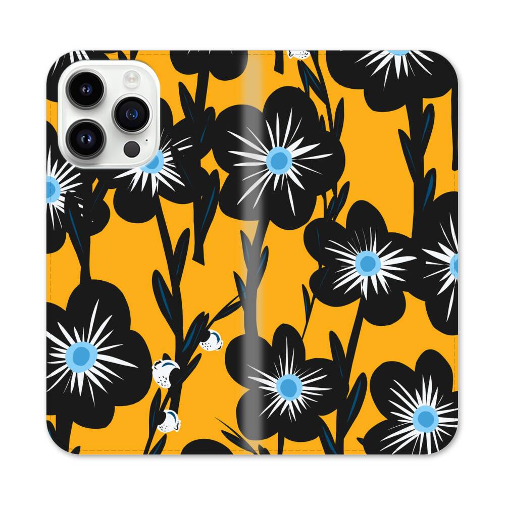 Schwarze Pflaumeblumen Apple iPhone 14 Pro Max Flip Case● Seitlich klappbar
