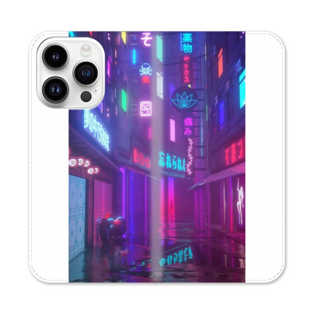 Cyberpunk Straße Apple iPhone 14 Pro Flip Case● Seitlich klappbar