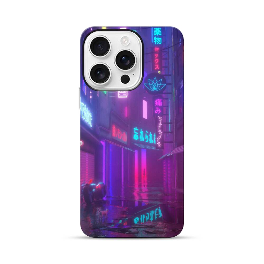 Cyberpunk Straße Apple iPhone 16 Pro Hybrid Case● Rundum bedruckbar