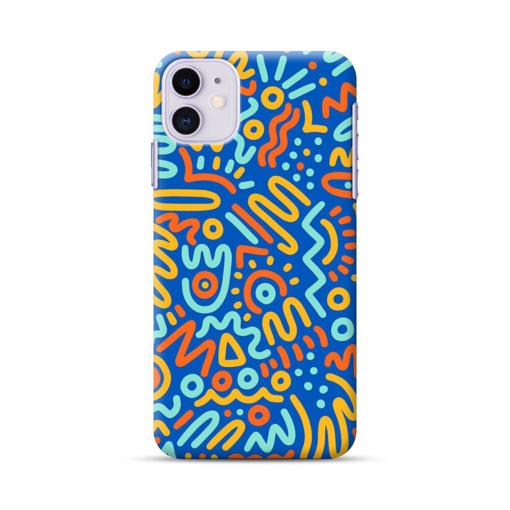 Blaue Schnörkel Apple iPhone 11 Hülle● Rundum bedruckbar