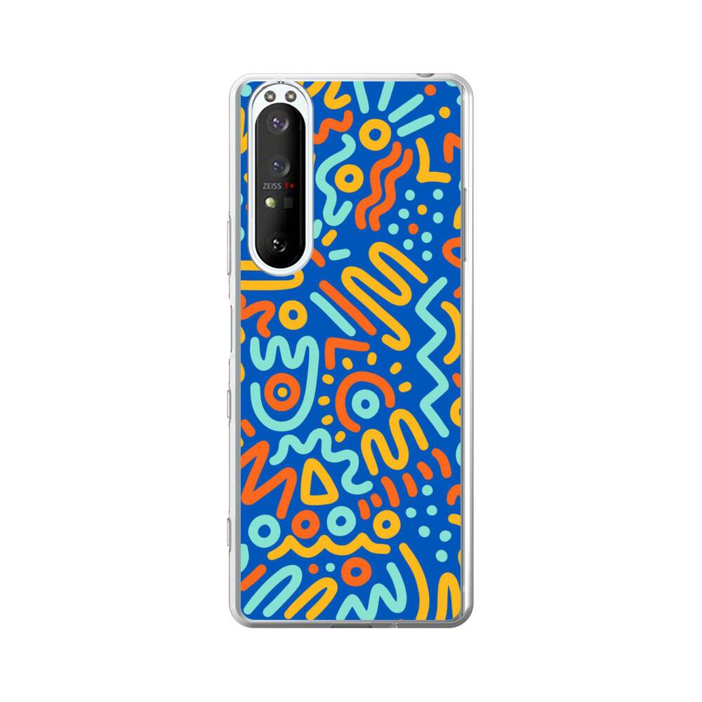 Blaue Schnörkel Sony Xperia 1 III Silikon Hülle● Sehr robust & langlebig