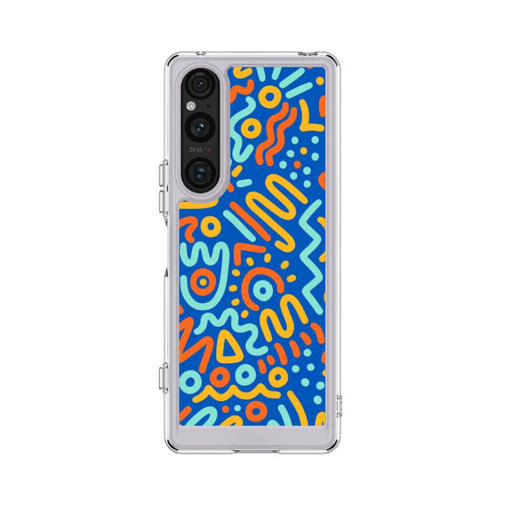 Blaue Schnörkel Sony Xperia 1 V Silikon Hülle● Sehr robust & langlebig