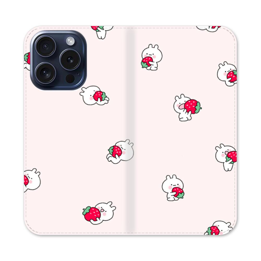 Süße Häschen mit Erdbeere Apple iPhone 15 Pro Flip Case● Seitlich klappbar