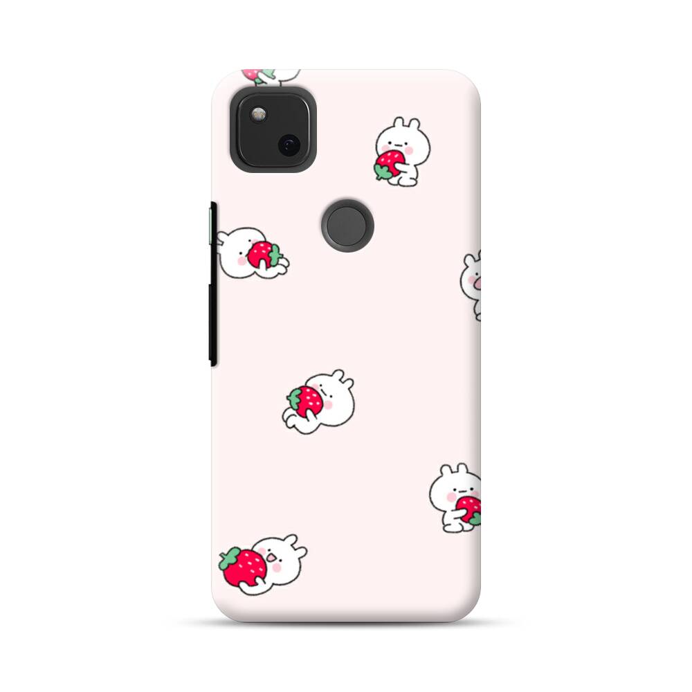 Süße Häschen mit Erdbeere Google Pixel 4a Hülle● Rundum bedruckbar